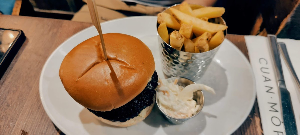 One of the first things you’ll notice about Cuan Mor is how incredibly versatile the menu is. It’s got a little bit of everything-from fresh, locally smoked seafood to hearty meat dishes and vegetarian delights. And let’s talk about the popular dishes-because the variety is impressive and the execution is even better. The High Tea Fish and Chips is a crispy, golden masterpiece, while the Venison Burger offers a flavorful twist that outshines the standard beef option (though the Beef Burger is no slouch either). For those leaning towards Scottish classics, the Haggis Scotch Egg or the Haggis Rarebit makes for a memorable bite-rich, savory, and loaded with character.